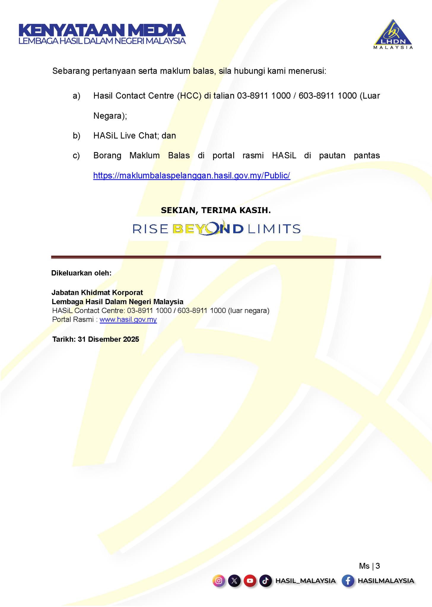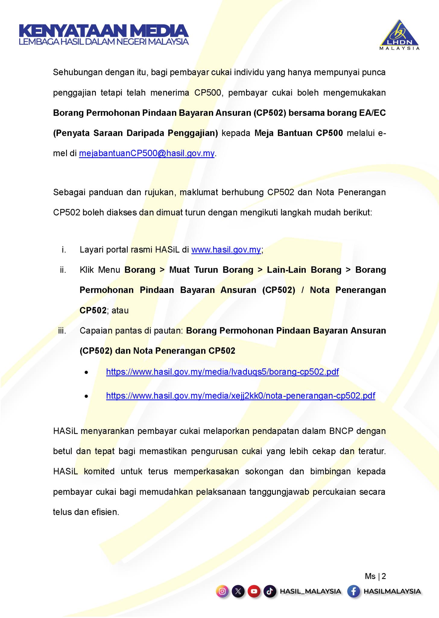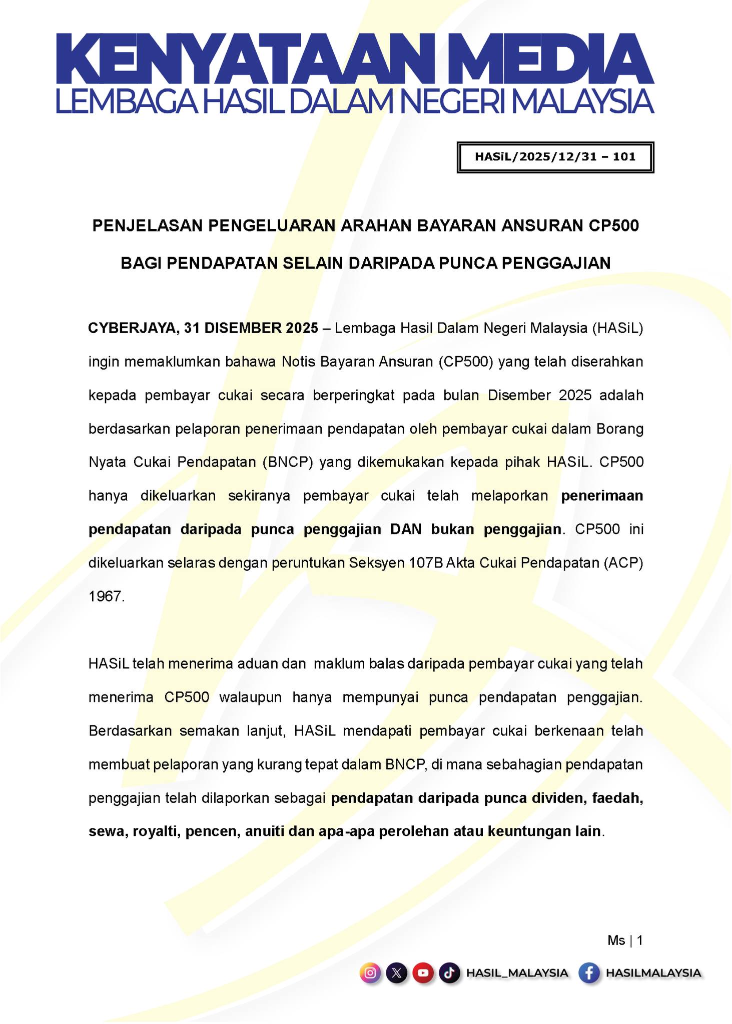 The post Klarifikasi Penerbitan Petunjuk Pembayaran Cicilan CP500 Untuk Penghasilan Selain Pekerjaan muncul pertama kali di Siakap Keli.